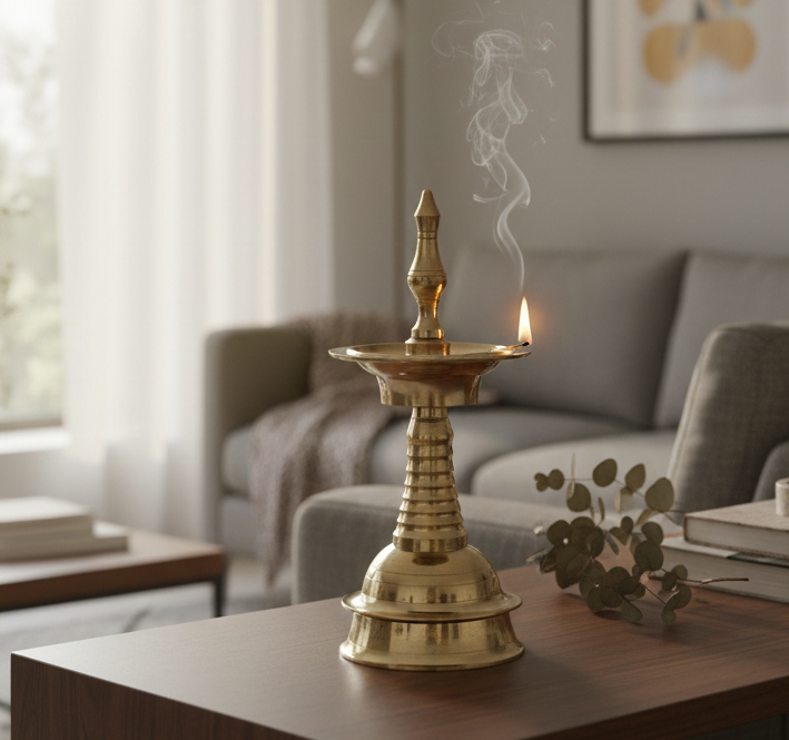 Diese traditionelle Messinglampe ist inspiriert von zeitlosem indischem Design und handwerklicher Eleganz. Sie eignet sich perfekt zur Dekoration von Wohnbereichen, Meditationsplätzen oder stimmungsvollen Ecken und sorgt für ein warmes, ansprechendes Licht. Platzieren Sie sie auf Regalen, in kleinen Bereichen oder schenken Sie sie als durchdachtes Präsent.